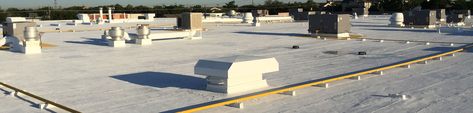 Liquid Applied Roofs are a fluid-based roof coating that can be bonded to a wide variety of substrates and can provide an increase in energy efficiency. The coating can be reinforced with fiber sheets which add to durability at transitions, curbs, and corners. Once cured, Liquid Applied roofs form a continuous, rubber-like water-shedding membrane that can beautify an existing system while adding years of service to its life-cycle.